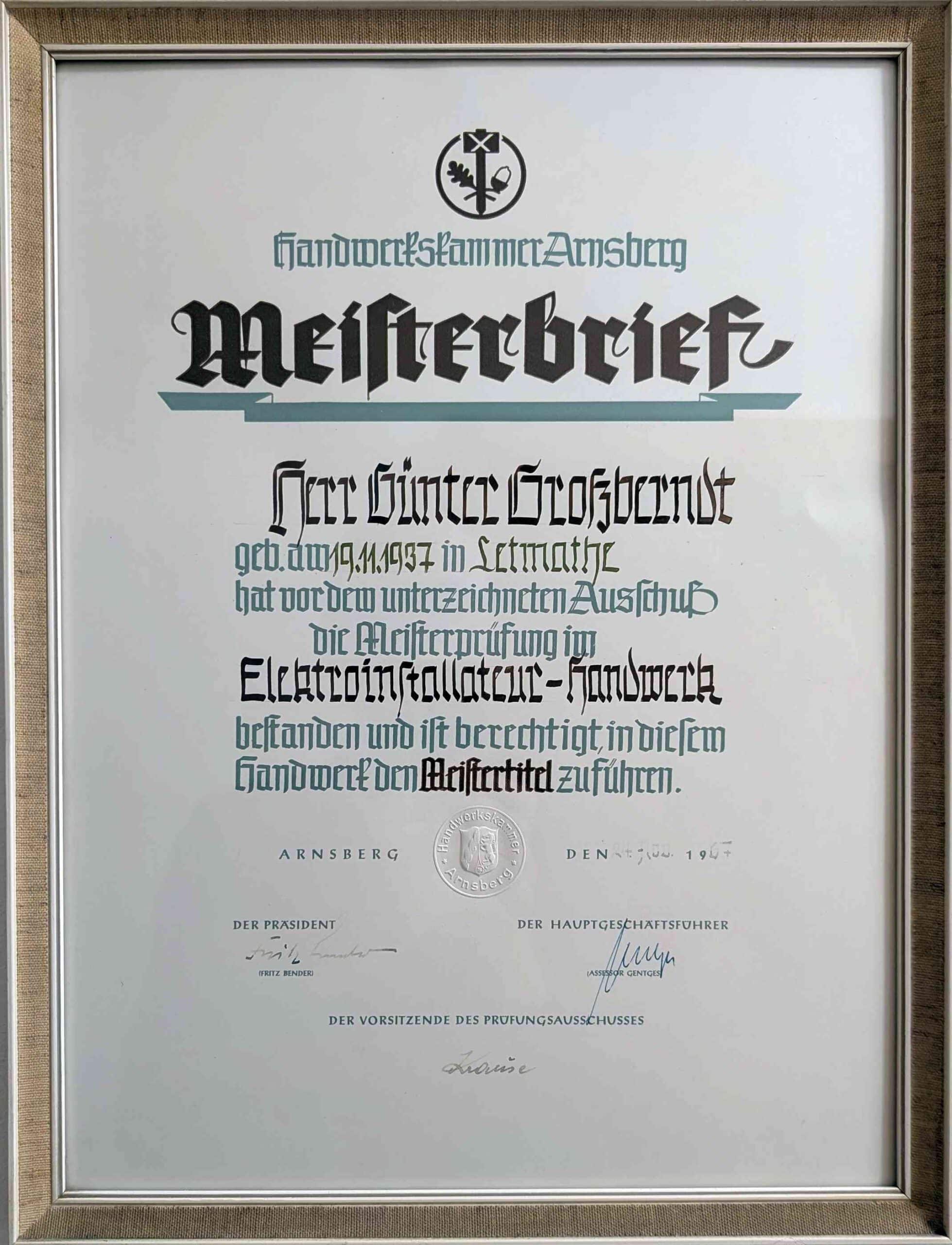 - Innungsfachbetrieb der „Fachinnung für Elektrotechnik und Elektronik Iserlohn“